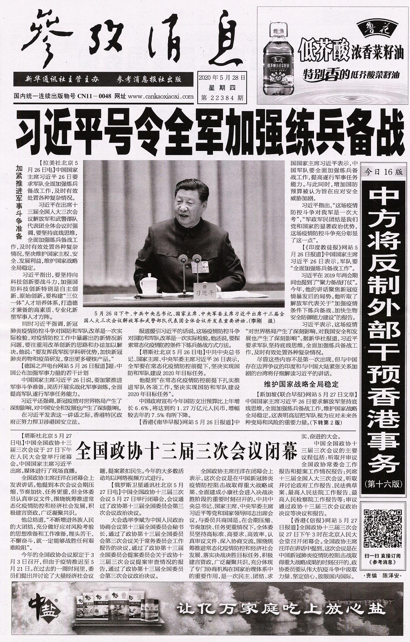 《参考消息》由新华通讯社主办、参考消息报社编辑出版,于1931年11月7日在江西瑞金创刊,是国内发行量第一、世界排名第五的报纸,拥有日均340万份的发行量。1956年《参考消息》筹备改版,重新设计报头,决定从鲁迅手迹中搜集了这四个字,并且一直沿用至今。