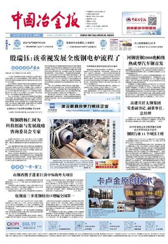 《中国冶金报》秉持以引领中国钢铁业在社会主义市场经济条件下实现“又好、又快”发展为己任,以“有用、好看”的新闻报道与经济信息,服务于我国钢铁业及相关上下游行业的办报宗旨,涵盖国内钢铁和相关行业资讯。