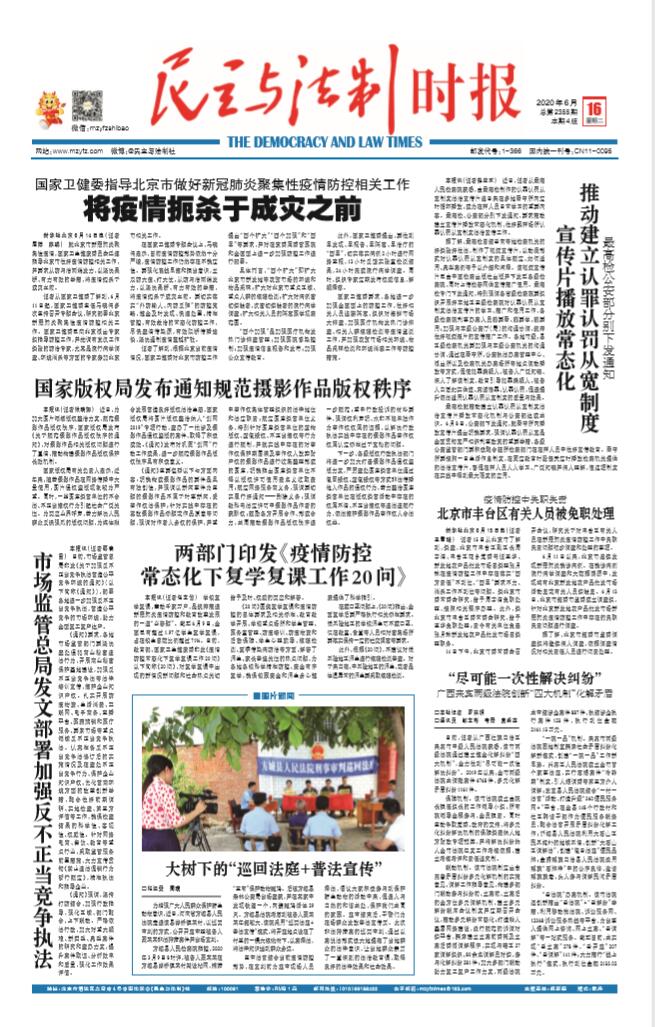 《民主与法制时报》被读者评为“全国十佳刊物”之一,以新闻与法律的交叉视角和创新手法,提供详尽、实用的新闻资讯与法律服务,秉承以民为本,善于监督,勇于维护公民权益的风格与传统,贴近时代,融入生活。