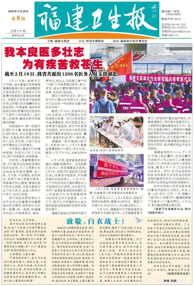 《福建卫生报》由福建省卫生厅主办。1958年10月17日创刊,周报,4开4版,是努力引导广大读者养成文明、科学、健康的生活方式的专业报。