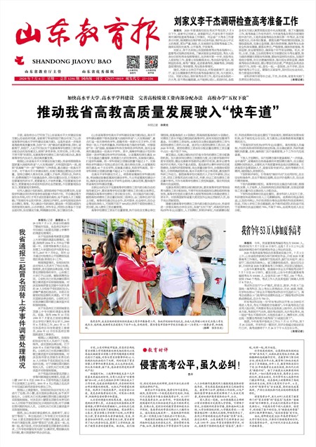 《山东教育报》立足前沿,阐释政策,传播经验,关注热点,剖析难点,传递心声。
