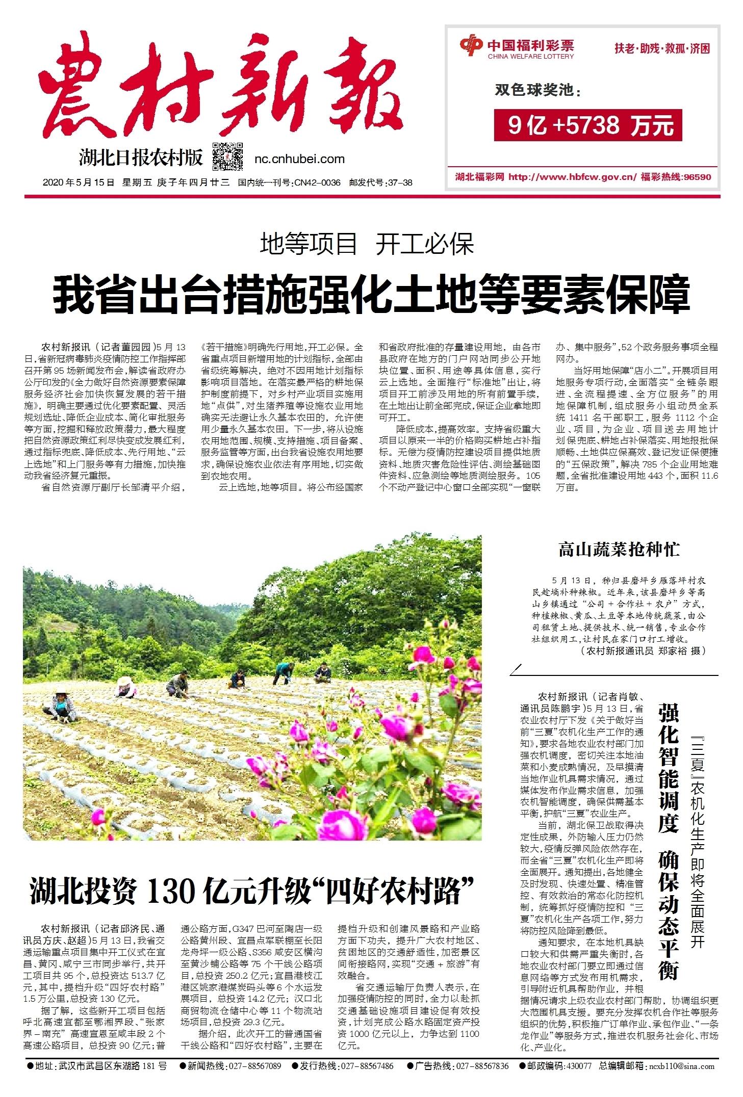 《农村新报》(《湖北日报农村版》)是湖北省唯一一张专门指导、服务全省“三农”工作的党报。