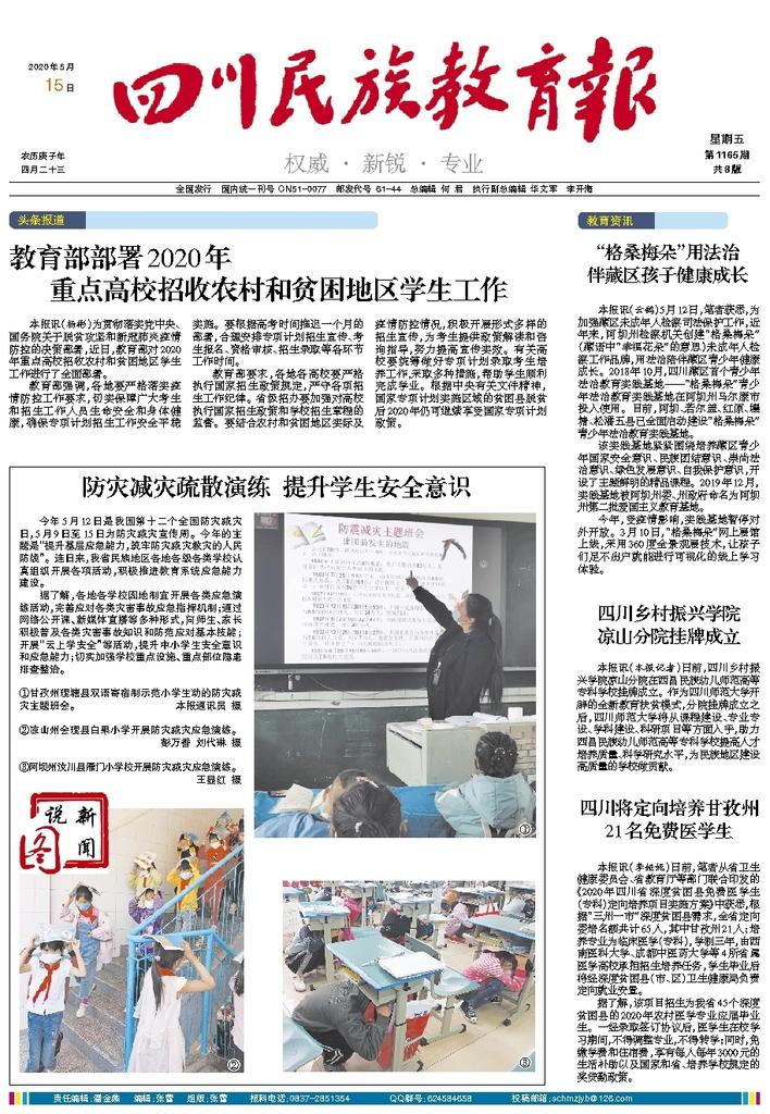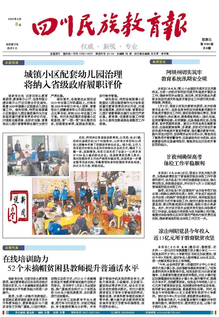 报纸简介:《四川民族教育报》于1984年创刊,是四川省内唯一以服务民族教育发展为主题的专业性报纸。《四川民族教育报》采用碎片化报道的媒体形式,扩大报纸的选题内容,丰富新闻视野与可读性、趣味性,提升报纸新闻传播能力。