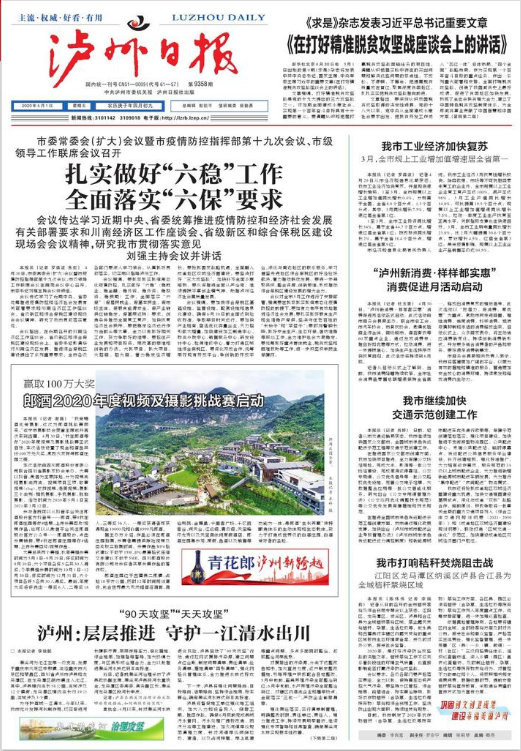 《泸州日报》宣传上,守好主阵地,唱响主旋律,打好主动仗,当好主力军,为泸州的跨越发展提供了思想保证、舆论支持和精神动力,也构建了一个与泸州区域性中心城市地位相符的报业平台和事业基础。泸州已经获得的国家级卫生城市、全国双拥模范城、国家历史文化名城、中国优秀旅游城市、国家级森林城市等“金字招牌”,均有两报的重要贡献。