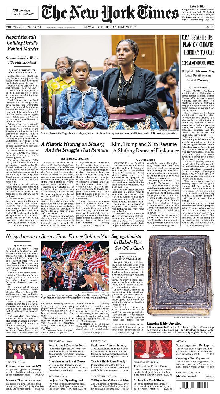 《纽约时报》(英文:The New York Times)有时简称为“时报”(The Times)是一份在美国纽约出版的日报,在全世界发行,有相当高的影响力,美国高级报纸、严肃刊物的代表,长期以来拥有良好的公信力和权威性。由于风格古典严肃,它有时也被戏称为“灰色女士”(The Gray Lady)。它最初的名字是《纽约每日时报》(The New-York Daily Times),创始人是亨利·贾维斯·雷蒙德和乔治·琼斯。