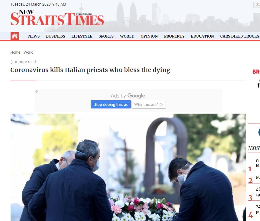 《新海峡时报》(New Straits Times)是马来西亚历史最久、发行量最大的英文对开日报。原为新加坡<海峡时报>的吉隆坡版,1845年由英国人在新加坡创刊,初为周刊,1858年改为日报。1965年新加坡与马来西亚分治后,分别在新加坡和吉隆坡出版。其后马来西亚政府要求在两地出版的同名报纸脱离关系,并于1972年将在吉隆坡出版的改用现名。由官方国营企业公司购得其80%的股份,其余股份仍归新加坡《海峡时报》报团。每天出32版,广告约占一半版面。发行量平日19.9万份,星期日24.2万份(1986)。
