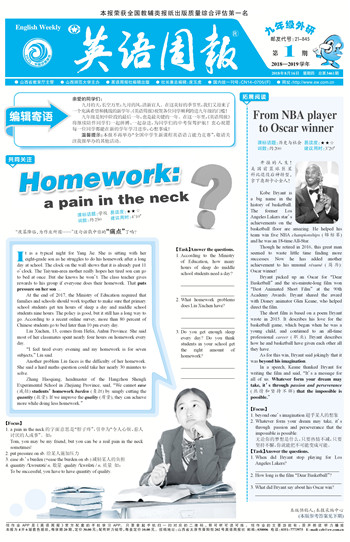 《英语周报》创刊于1983年4月,由山西省教育厅主管,山西师范大学主办,国内统一刊号:CN14-0705/(F),是一份面向全国大中小学师生的英语教育教学辅导类报纸。报社总部位于太原,另设有华北东北分社、华东分社、中原分社、西北分社、华中分社、华南分社、西南分社等分社。历经多年磨砺,报社胜利打造出一支由外籍编审、归国留学人员、众多中高级职称人员组成的专职编辑队伍以及由6000余名教学一线的特、高级英语教员组成的特约编辑及撰稿人队伍。