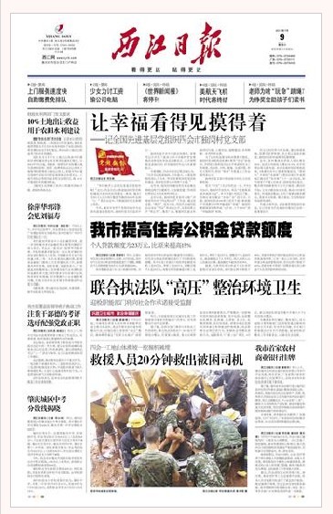 《西江日报》是广东省中共肇庆市委机关报,1950年4月创刊,毛泽东主席亲笔题写报名。作为地市级党报,获此殊荣者国内屈指可数。