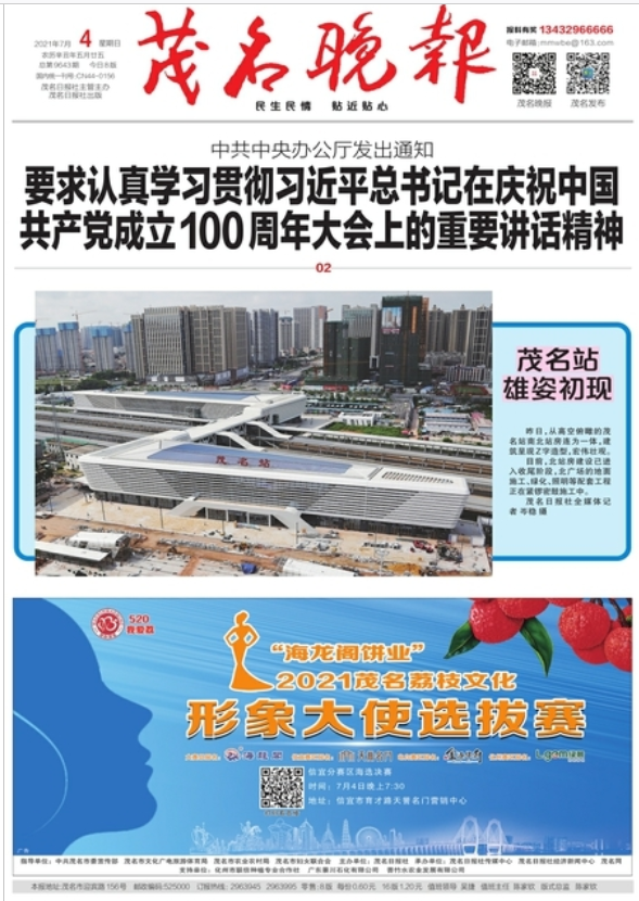 《茂名晚报》是由中共茂名市委主管主办的茂名地区唯一的一家晚报,四开十六版,天天彩报。作为茂名地区的权威媒体之一,《茂名晚报》集社会经济、文化、体育、旅游及百业商情等各种信息为一体,是一张内容丰富,关心民众,可读性强的综合性报纸。《茂名晚报》发行量大,发行网点遍布茂名城乡,投递及时准确。