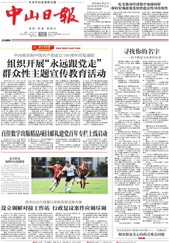 《中山日报》发行全球60多个国家和地区,是唯一可以进入台湾地区的党报。《中山日报》从2006年起全面实行自办发行,2006年,日均发行量为10万份,系中山日报报业集团旗下最主力成员报。报道内容立足中山,面向国内外,突出中山特色,关注民生,贴近社会,亲近读者。《中山日报》以其强烈的政治敏锐和责任担当,坚持正确的舆论导向客观报道本市及国内外经济建设和社会发展的方方面面,可谓一报在手览尽全球! 特别是旅游周刊、楼市周刊、健康周刊、社会新闻、民生新闻和新闻速度等内容贴近百姓生活新闻版块,更加备受读者喜爱。2006年,《中山日报》已经成为中山市发行量最大、覆盖面最广、到报时间最早的的本土最强势主流媒体。