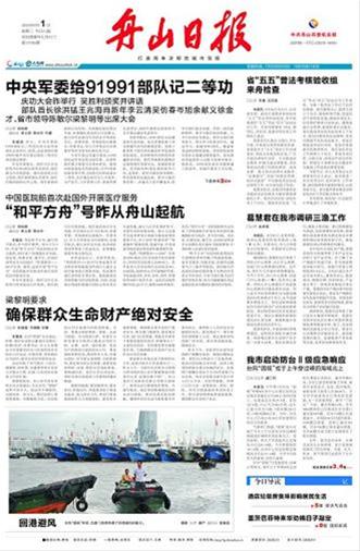 《舟山日报》是中共舟山市委机关报,创刊于1955年3月,1958年刘少奇为报纸题写报头。《舟山日报》以“权威、有用、可读”为办报要求,努力发挥党委机关报在舆论引导中的主导作用,围绕市委市政府中心工作,贴近海岛市民的生产生活,以“权威、有用、可读”为宗旨,不断提升报纸质量,采用国际流行的瘦报型版式,每周48个版,报纸充满浓郁的海洋特色,是舟山地区最大的、综合实力最强的日报之一。