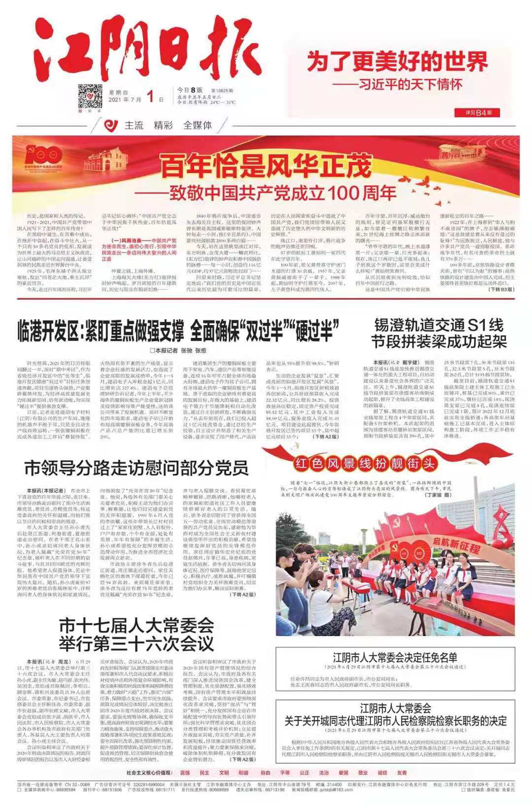 《江阴报》创刊于1956年5月1日,1958年9月1日改办为《江阴日报》,1961年10月停刊。1989年1月1日《江阴报》正式复刊。1993年12月1日,经国家新闻出版署批准,《江阴报》再次扩为《江阴日报》,现为对开8版周七刊,发行量3.25万份。