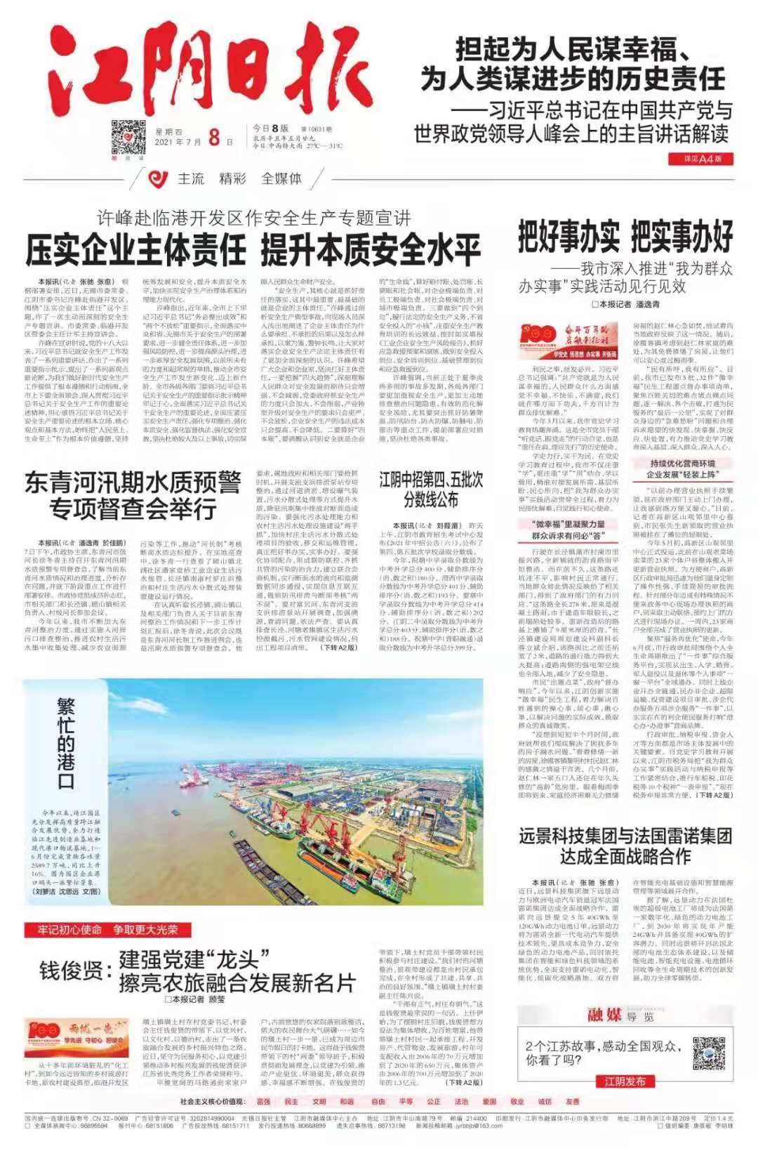 《江阴日报》坚持“党报性质、晚报风格”的办报特色,当好江阴市委市政府和人民群众的喉舌,为江阴经济社会的飞速发展营造了良好的舆论环境,报纸复刊仅1年多,江苏省新闻出版局在报刊审读报告中,就充分肯定该报的办报宗旨,评价《江阴报》是“县市报纸中的后起之秀”,改办日报后,该报发表的新闻稿每年都要在地市以上好新闻评比中获奖50篇次左右,无论是获奖的数量还是等级,在全国500多家县市级中均名列前茅,1994年该报发表的消息《华西村为陕甘宁晋培训100多名乡村干部》获中国新闻奖二等奖,开全国县市报先河,1995年又有一篇消息获中国新闻奖三等奖。
