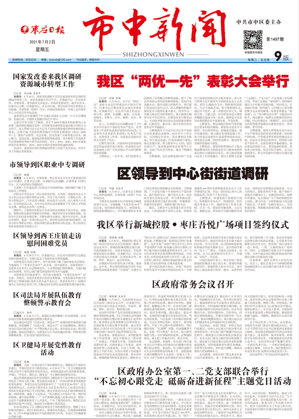 区委机关报《市中通讯》全新改版为《枣庄日报 市中新报》。6月29日,区委、区政府在区电视台演播大厅隆重举行了《市中新报》创刊揭牌仪式。区委书记、区人大常委会主任朱国伟,区委副书记、区长于良出席仪式,并为《市中新报》揭牌。王真海、修婷、刘勇、杨继英、李鑫、高志勇、沙雪斌、徐刚、王光明、胡乐华等区领导出席仪式。