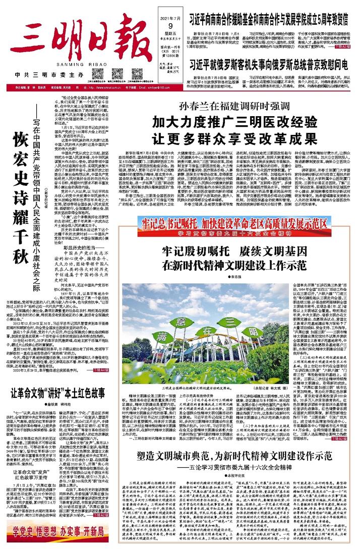 《三明日报》目前每逢周一、三对开八版,周二、四、六、日对开四版,周五报为四开十六版,是三明唯一的日报;作为三明报业的旗舰和龙头,具有其他报纸所不可比拟的三大优势:一是公信力,二是影响力,三是渗透力。 最快的报道速度,读者获取资讯最多的平面媒体 《三明日报》及时、迅速地报道以三明市为重点的当日全市新闻,国内和国际的重大新闻。