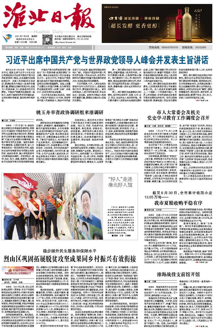 《淮北日报》是中共淮北市委机关报,创刊于1971年5月1日,现为对开8版。