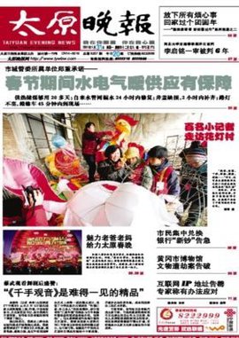 1965年创刊的《太原晚报》乘市场经济的春风,步履更健,省略倍增。激光照排,胶轮印刷,自办发行,以省城为主,辐射三晋,面向全国,贴近市民的本质,强大的发行网络,使晚报发行理迅速提升,成为省城神经过敏合类报纸中日发行量最大,阅讯率最高的报纸。